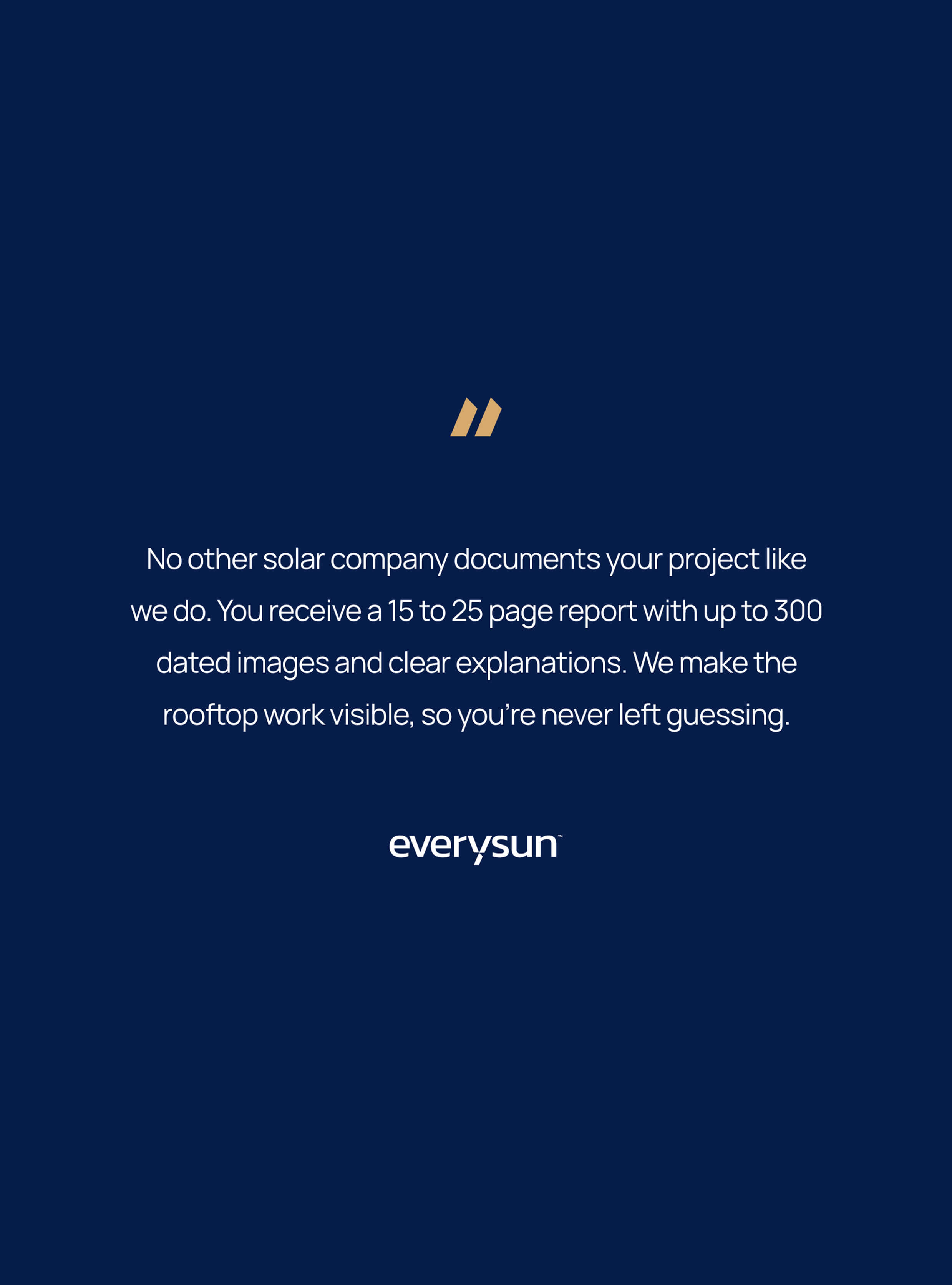 No other solar company documents your project like we do. You receive a 10 to 25 page report with up to 50 dated images and clear explanations. We make the rooftop work visible, so you’re never left guessing.